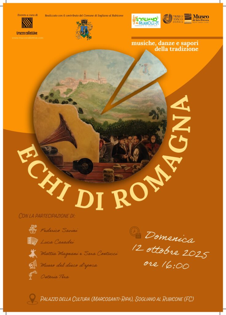 Am Sonntag, den 12. Oktober, wird im stimmungsvollen Rahmen des Palazzo della Cultura (Marcosanti-Ripa), Heimat des Vintage Record Museum in Sogliano al Rubicone (FC), Echoes of Romagna zum Leben erwachen: ein Ereignis, bei dem Musik, Tanz und Geschichte miteinander verwoben werden, um eines der bekanntesten und beliebtesten Kulturerbe unseres Landes zu feiern.