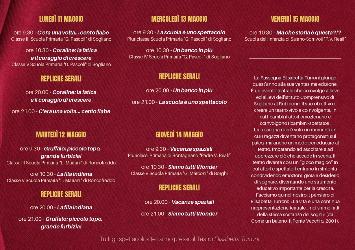 Tous les spectacles auront lieu au Théâtre Elisabetta Turroni.